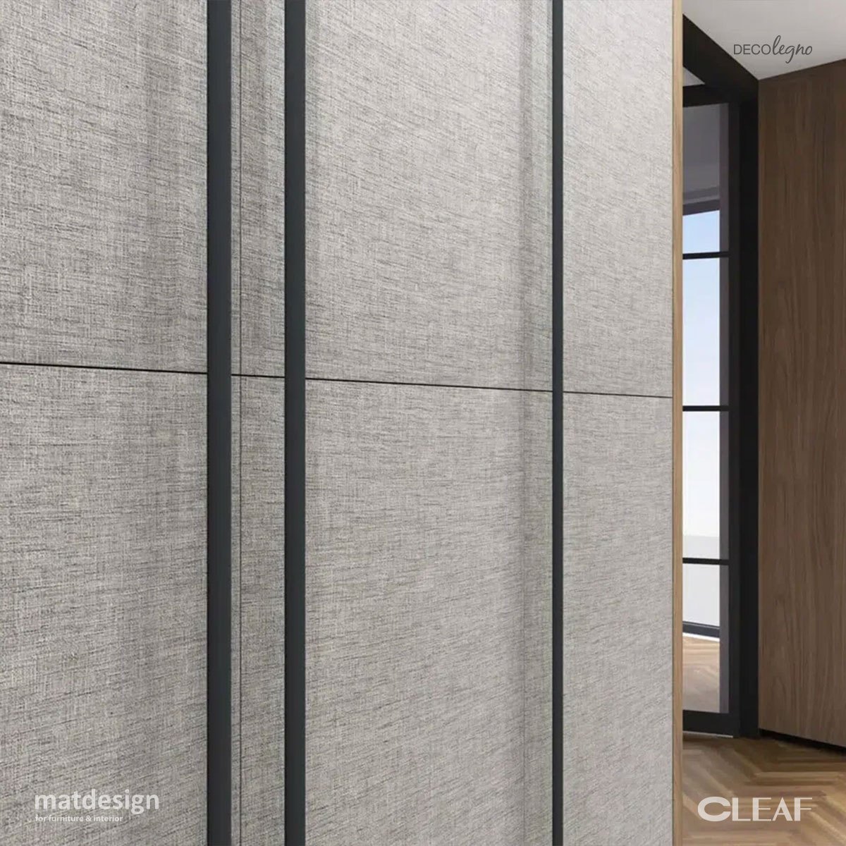 Cleaf Fusion to wyjątkowa struktura, która łączy elegancję tkaniny z trwałością płyty meblowej. To pierwsze na świecie rozwiązanie, które pozwala na zastosowanie tekstyliów w powierzchniach meblowych i ściennych – wszystko dzięki opatentowanej technologii (EP 2 189 298 A1).