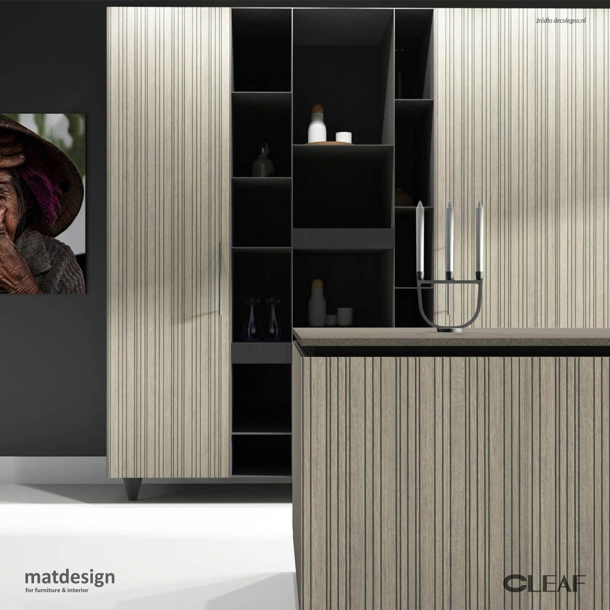 Struktura Tolda od Cleaf to propozycja, która wciąż zachwyca projektantów i producentów mebli. Inspirowana drewnianą podłogą pokładów łodzi, wyróżnia się rytmicznym układem czarnych linii i naturalnym rysunkiem dębu.
